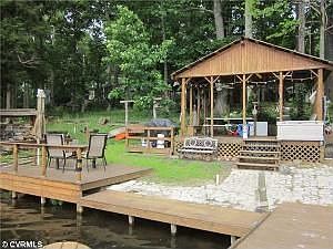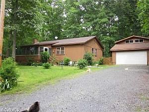 What a wonderful opportunity to own a vacation home that offers a lake waterfront lot! Start the day with a cup of coffee on the enclosed front porch. This home is cozy with hardwood floors throughout, enjoy the wood burning fireplace in the winter, the living room/dining room are open to each other, the two bedrooms and bathroom are large. In the rear of the home there is a deck to enjoy the outdoors. The oversized garage is 20x24 and has a finished upstairs with fireplace, there is an additional lot behind the house for privacy with a carport that conveys, enjoy the waterfront lot that has a pier, deck, and pavilion for entertaining. The location is convenient only 1 hr. from Richmond/Charlottesville. Trices Lake is a 200 acre lake in which you can enjoy swimming, boating, and fishing.