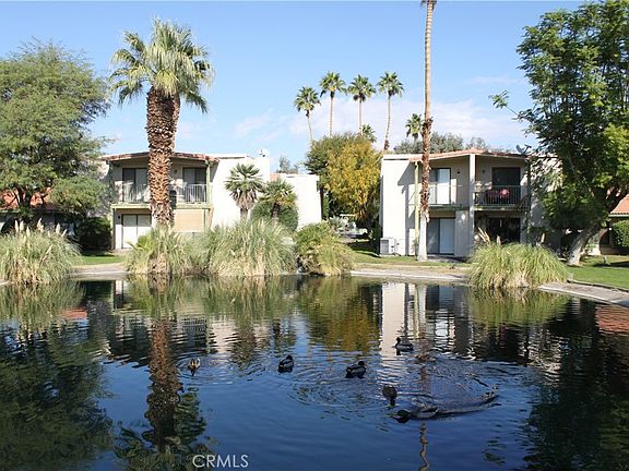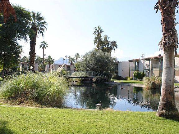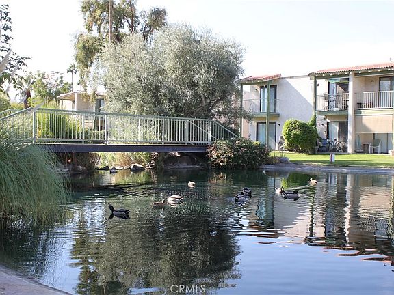 Slight cosmetic fixer conveniently located minutes away from Palm Springs. Enjoy the large serene pond and ducks as well as waterfalls. There are picnic and sitting areas to take in the peaceful scenery. Gated community for added peace of mind.