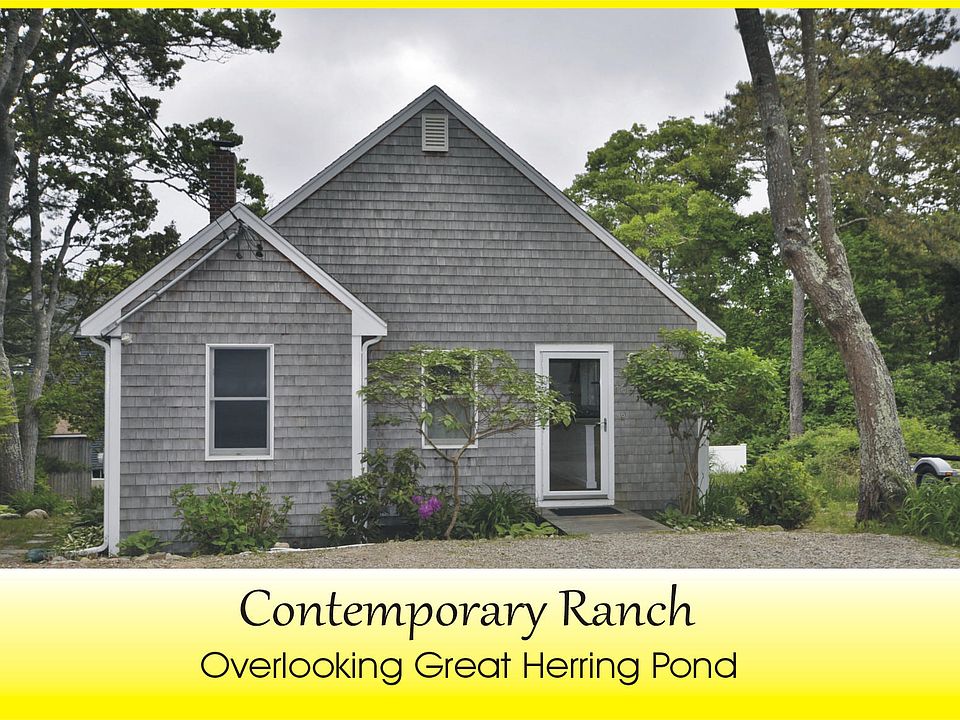Pretty and sun filled Contemporary Ranch style home overlooking Great Herring Pond. Just adorable and so easy to maintain. Completely renovated in 2007 from the foundation to the roof. A small ramp gives you easy access into the first floor living level. Open floor plan with Cathedral ceilings, hardwood flooring and recessed lighting. The finished basement is also an open concept with a kitchenette, stack-able laundry and a bathroom with shower stall. Also a slider to the back yard and beautiful garden area. Great Herring Pond is fully recreational and is located just one street over. It is a 376-acre warm water pond and within walking distance.