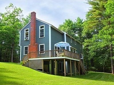 Wonderful location for the lovingly maintained Colonial home situated on private 4.72 acre tree lined lot. Current owner has made many tasteful improvements/updates including beautiful kitchen with granite counter tops, stainless steel appliances and hardwood flooring, new roof, heating system, replacement windows and fresh paint inside and out! Kitchen is open to large family room with fireplace onto sunny deck and quiet yard which adds to the warmth and charm of this classic New England home. Large living room and dining room complete this great layout. Spacious master bedroom with double closet space and large full bath with Jacuzzi. Three additional bedrooms with ample closets and new carpeting. All in all a great value in a great location. Truly a special property and a MUST SEE! Title V approved!