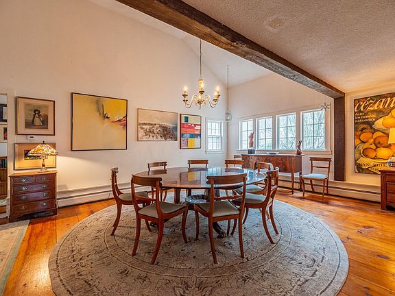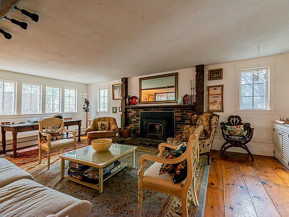 Stylish three bedroom one level antique cape built in 1890, cozy detached one bedroom guest cottage, two car garage, plus single car garage, on 2.6 level acres +/- with in-ground swimming pool (new liner), and wonderful mountain views. This is what Vermont is all about. Many fine features including: fabulous old wide board pine flooring, exposed beams, fireplace with wood burning insert, three season enclosed sun porch. The main house consists of large living room/dining room (26x23), eat-in kitchen, laundry room/half bath, family room, primary suite with walk-in closet, and updated full bath, two additional bedrooms sharing second updated full bath, loft area on second floor accessed by stair case. The guest cottage (648 sqft) has living room/kitchen-apartment size appliances, one bedroom, and full bath/laundry, wood stove, second floor loft accessed by ladder. The property is lovely and has a big level yard, slate patio area, partial fencing, protected mountain views, mature landscaping, and in-ground pool with a new liner perfect for summer 2023 fun. The property has a drilled well, septic system-pumped 2020, the exterior is wood clapboard and brick. The roofing is a combination of asphalt shingle, metal, and standing seam metal. This one has so much to offer, we invite you to visit. All room measurement are estimated.