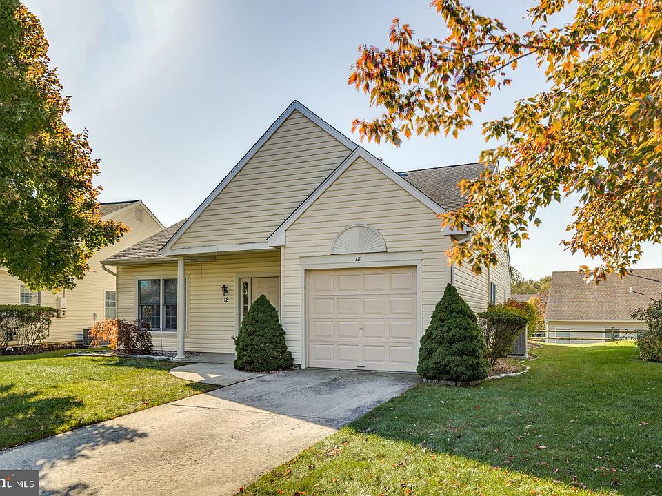 What a wonderful home! Bright and airy and move in ready. Enjoy one floor living in this open floor plan with vaulted ceilings and hardwood floors. The kitchen has lots of cabinet space, a breakfast area and enjoy your morning coffee in the enclosed sunroom! The home offers two large bedrooms, master suite with large bath, soaking tub, stall shower and walk-in closet. There's an additional garage for parking and attic storage for even more space. Enjoy all the amenities the community has to offer: pool, club house, tennis, the shops up front and it is conveniently located to 295, rt 130 and rt 206.