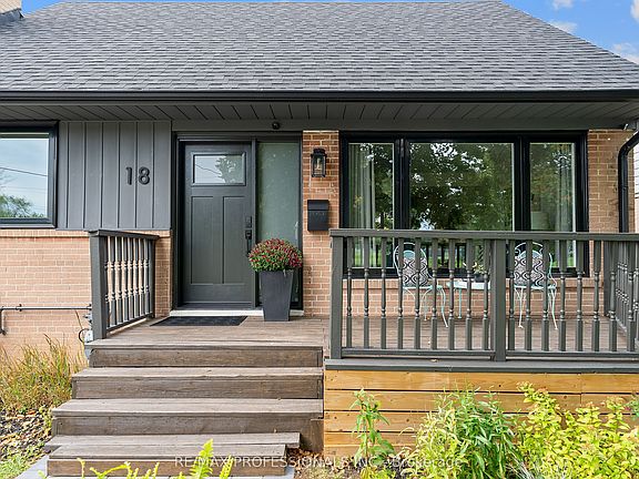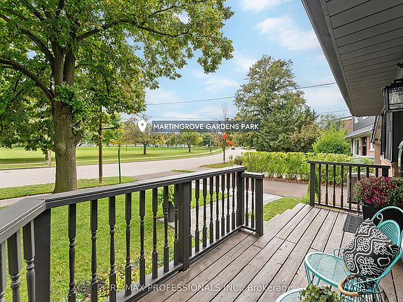 Welcome to 18 Lavington Drive, a fully renovated 1.5 storey detached brick home in Etobicoke's Martin Grove Gardens neighbourhood. Situated on a 52 x 108 lot with a charming front porch and excellent curb appeal, this turnkey home offers modern updates, a functional layout and an enviable setting directly across from Martingrove Gardens Park. The main level features a foyer with coat closet, a bright living room with wide-plank flooring, pot lights and a large window overlooking the park, a dining room with a walkout to the backyard, a renovated kitchen with quartz counters and backsplash, stainless steel appliances, pot lights, a double sink & a picture window overlooking the backyard, a convenient updated powder room, as well as a versatile bedroom. On the second level there a two spacious bedrooms with walk-in closets, office nooks and large windows as well as a 3-piece bath with glass shower and modern finishes. The lower level boasts a massive recreation room with panelling, broadloom and track lights, as well as a combined laundry/storage area. The backyard is perfect for family living and entertaining with an oversized deck, mature trees, large lawn, concrete patio, new fence (2023), shed and gas BBQ hookup. A carport and newly repaved private driveway provide parking for three cars. Updates include new windows/doors (2025), modern flooring with Aria vents, new baseboards, updated plumbing/electrical, a smart thermostat & much more! Ideally located directly across from newly upgraded Martingrove Gardens Park with a playground, splash pad, tennis, pickleball and baseball diamonds. Near local shops like Montesanto Bakery and Martin Grove Fish & Chips, Westway Centre, Costco, West Deane Park, Weston Golf Club and local schools. Easy access to TTC, Hwys 401& 427 and Pearson Airport! With contemporary touches and a desirable park-side location, 18 Lavington Dr is a move-in ready home offering outstanding value in a mature, family-friendly Etobicoke neighbourhood!