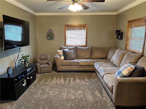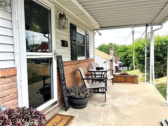 Ranch Style w/Covered Front Porch. Living Room featuring Crown Molding, New Carpeting & Lots of Natural Light. (hardwood floors underneath). Updated Kitchen w/Cork Flooring, Decorative Backsplash, SS Sink & SS Appliances. Entertain Family & Friends in your Spacious Dining Room showcasing Hardwood Floors, Crown Moulding, Chair Rail accented by a Shadow Box Design & Updated Light Fixture. Bathroom on Main features Black Fixtures, Subway Tile, Pedestal Vanity & Tub/Shower Combo. Captive, Primary Bedroom has Powder Room & Sliding Glass Door to Upper Suspended Rear Deck. Second Bedroom could be an Office/Sitting Area outside Primary Bedroom. Third Bedroom has plenty of room for treasured furnishings. Lower Level has lots of storage. Large Family Room for gatherings or relaxing. Additional Open area across from Laundry for Work Area. INCREDIBLE REAR DECK for outdoor activities overlooking Mon Valley hills. Lower Fenced area great for Pet Run. Shed. Minutes to I70. Must See!