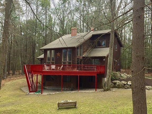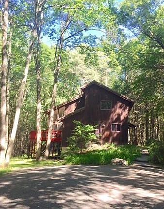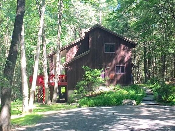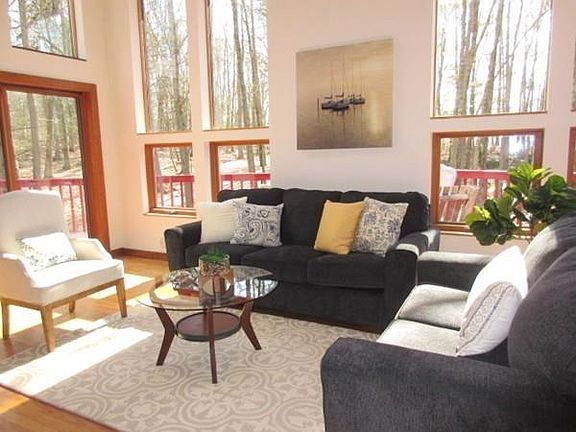 Woodland scents surround this stunning 4BR/3.5BA Contemporary nestled on a wooded, private 5.33 acre site. The clearing, ideal for gardening, offers summertime fun for the entire family. Three stories include a lower level walk-out--perfect for an au par, home office, or in-law suite. Hardwood and tile floors are predominately found throughout this flexible floor plan. The soaring architectural details of cathedral ceilings and a beautiful stone fireplace with wood stove are stunning accents in this warm and inviting home. Entertain on the screened porch, or large wrap-around deck all summer long. Minutes to area colleges, shopping and major routes, plus High-speed internet in 2015 make this location a top choice!