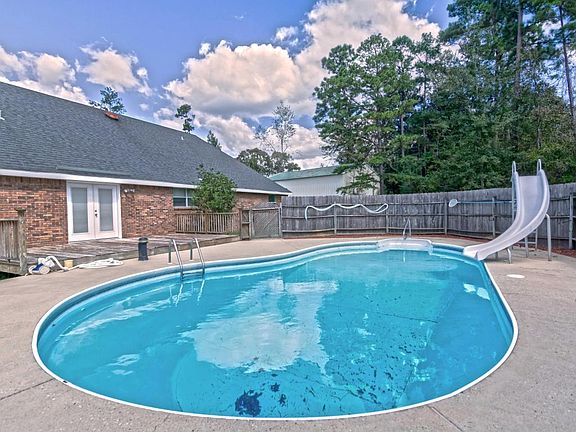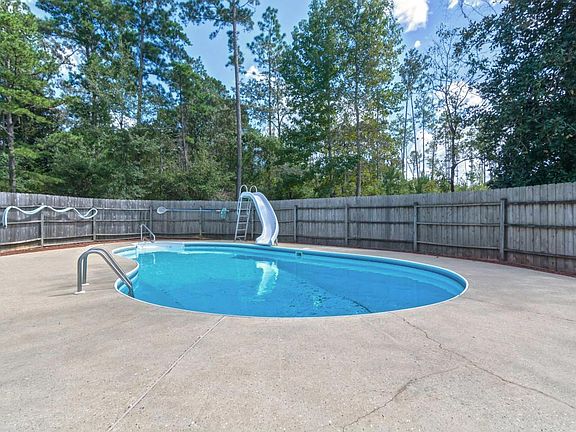 - Exterior Features: Paved Drive, Circular Drive, Fenced Yard, Garage without door, Improved Outbldg(s), Storage Shed, Liner Pool