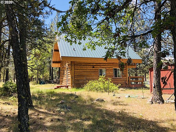 End of the road privacy on 5 treed acres with some open meadow too. Well built log cabin for your weekend retreat or permanent home. Large front deck and private upper deck to watch the wildlife. Propane stove on rock hearth with river rock chimney. Metal roof. 3 storage sheds. Fenced flower area or dog run. Level lot with some raised garden beds. Adjacent 20 acres also available. The entire upstairs is one open bedroom, it has plenty of room to divide it into 2 rooms. Appliances included.