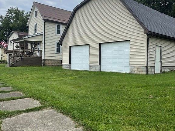 Lovely and Immaculate Two Story located on a Corner Lot that has off-Street Parking as well as a 32x48 4 Car Detached Garage that has Electric installed. Pristine Covered Front entry Porch and Partially Covered Back Porch and also has a Patio area located in exterior area between house and Garage. Backyard is Partially Fenced for Privacy. Spacious Kitchen with Oak Cabinety, Separate Dining Room and Living Room. Laminate Flooring throughout the Main Level and Wall To Wall Carpeting, on Upper Level of Home except for the Full Bath on Upper Level. Newer Windows have been installed in the home as well as a new Furnace, Hot Water Tank, A/C and a Metal Roof. No need to do anything here....just move in....