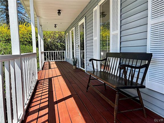 Delightful open style Cape Cod within Tuscarora Village where you can relax on large front porch. Featuring a first floor master bedroom with walk in closet and reading nook leading to jack and jill first floor full bathroom. Spacious living room w/ wood stove and beautiful stonework for cozy winter nights- as well as built in shelves for storage. Brightly lit dining area with skylights in