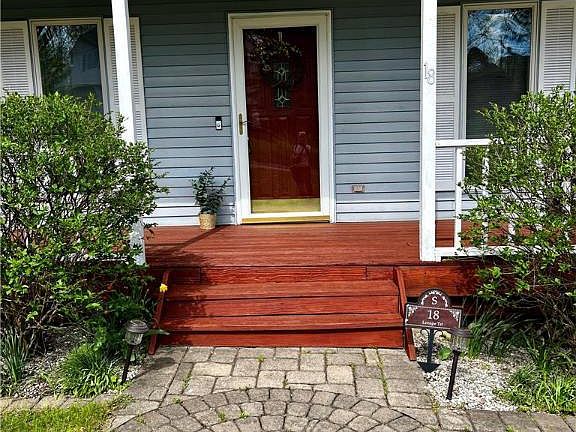cathedral ceiling for views of the private backyard sanctuary. Extra pantry is a bonus in dining area. Kitchen boasts abundant cabinets. Den/office sunroom bathed in light leading to deck and fenced in low maintenance yard. Most of first floor was recently painted. The second level bedrooms include two closets and plenty of extra storage. Walk out basement to driveway includes new Anderson sliders, extra storage, rec room, and separate family room for entertainment. The community offers river access, sports facilities, and more. Close to nature trail and easy commute to Rt 80/NJ.