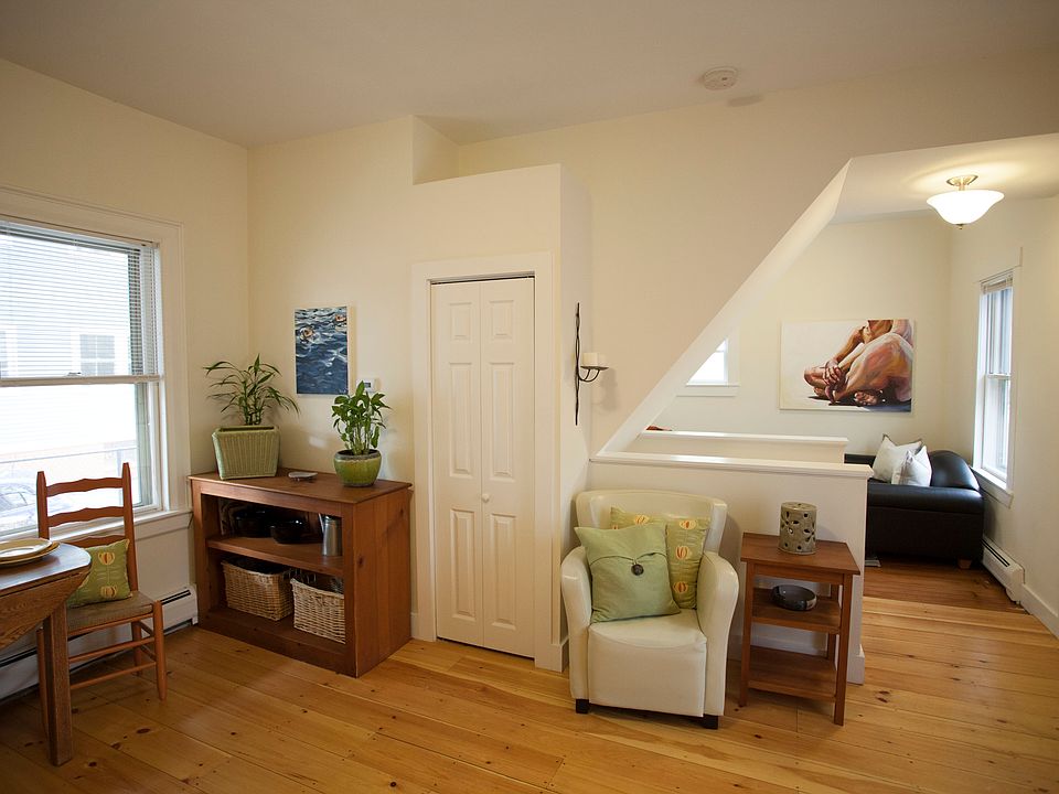 Partially furnished 1 bedroom + bonus room West End Portland apartment $2195/ month Immaculate 1 bedroom apartment (condo in a 4 unit building) at 18 Lewis Street #2 in Portland offers partial furnishings, wash/ dryer in unit, and plenty of space with many windows and natural light. Building is very well maintained and the exterior was just painted. Located on the West End close to hospitals, downtown, waterfront but on a quiet street so once you're home you can really relax and/ or even work from home without noise or distractions. Very walkable to surrounding restaurants, shops, outdoor spaces. When you enter the apartment, you can turn left to the spacious kitchen with eating area. All stainless appliances plus a dishwasher. Plenty of cabinet and closet storage space. If you turn right you find the sitting area and bathroom. The lower level offers 2 rooms (a bedroom + bonus room) with lots of closet space and stacked washer/ dryer. Some of the furnishings that will be included in the rental are: curtains + hardware; couch; kitchen island + chairs; dining table + chairs; bed; coffee table; large A/C unit that cools entire unit. Other items may be optional such as the t.v.; rugs; futon; shelving. Off- street parking (1 spot) in the rear of the building. The condo association handles the landscaping, snow removal and water bills. Tenant will be responsible for: CMP electricity, Internet, and Unitil natural gas for the heat. Utilities have been historically reasonable and averages can be provided upon request. No smoking inside or around outside of building. One (1) pet under 30 lbs may be considered and must be approved to move in. One year (12 months') lease agreement to begin (may be willing to consider shorter term of 9 mos). Available for November 1 move- in. Required for move in: approved rental application for all adults ($35 each non-refundable and all applicants receive copy of their credit report), security deposit of $2195 and first month's rent. Showings by appointment. We use our own rental application which is on our website, SouthernMaineRents.com.