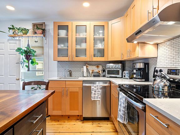 Welcome to this exceptionally charming condo in Portland's much loved West End. 18 Lewis Street is a beautiful and well maintained 4 unit building that boasts off street parking on a quiet tree lined street. Unit 4 is located on the 2nd & 3rd floors in the back of the building. You will park the car in your driveway spot then walk down the common area patio & garden to your sweet as can be private entrance. Once upstairs, you'll be greeted by sunshine, gorgeous hardwood floors, and a tastefully updated eat in kitchen with all the bells and whistles. Plenty of storage, Quartz counters, tile backsplash, and direct access to your own back deck for relaxing while you have your morning coffee or evening BBQ plans. Smart storage options throughout the unit include space for the newer washer/dryer to be tucked away on the main living area as well as many built ins in the living room and bedroom. This 1 bedroom 1 bath condo offers comfort, convenience, and charm. Whether you love to stroll the Western Prom, enjoy Portland's vibrant art district, enjoy the many award winning restaurants throughout the city, or shop along the waterfront, 18 Lewis Street allows you to walk to all of these options and take full advantage of this amazing city and location. Open houses scheduled for Wednesday August 14th 4-6pm and Saturday August 17th 11am-1pm.