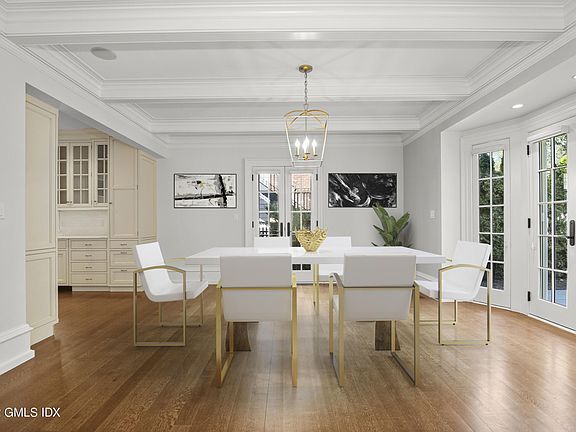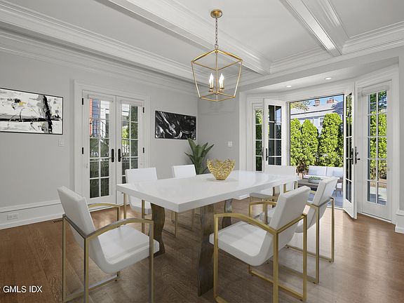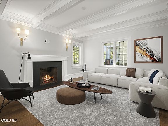 Available for immediate occupancy, this sun-filled open floor plan townhouse is set behind a high hedge on a quiet street 2 blocks from Greenwich Avenue. Beautiful custom detail and finishes, tall ceilings and rich hardwood flooring throughout. Modern layout includes Living room with fireplace and adjoining dining room opening to an expansive, private terrace. Gourmet kitchen with marble countertops and plenty of storage. Bright and airy stairway leads to vaulted ceiling primary suite with French doors to balcony, walk-in closet and large luxurious bath plus an additional bedroom. Finished lower level with 9ft ceilings has family room, fireplace, office, bedroom and full bath. Attached 1-car garage plus private parking area. Easy turnkey lifestyle.