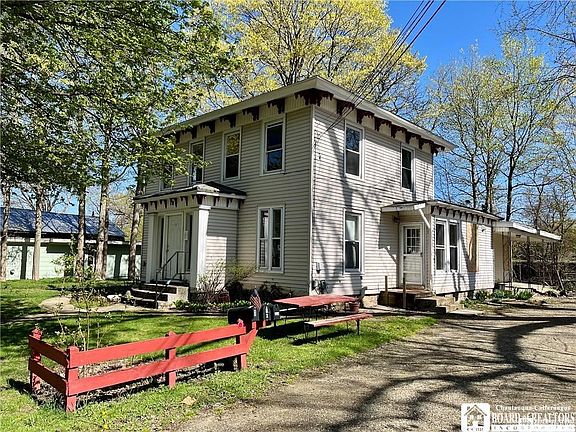 Discover a remarkable rental opportunity in the Village of Fredonia. This three-unit property includes a spacious 3-bedroom unit, and two 1-bedroom, 1-bath apartments. With strong rental potential, the property offers flexibility to meet various tenant needs and maximize income. Located close to downtown Fredonia, tenants enjoy easy access to local amenities. Situated on a double lot with the Canadaway Creek flowing through the backyard, it provides a serene retreat. A detached garage offers additional storage or parking, complemented by a loop driveway for easy access and ample parking. While the property requires renovation, it allows buyers to personalize and enhance its value, making it a prime investment opportunity in Fredonia's rental market. Utilities on. Water is shut off due to leak. Baseboard heating needs replaced/repaired in several areas before use.