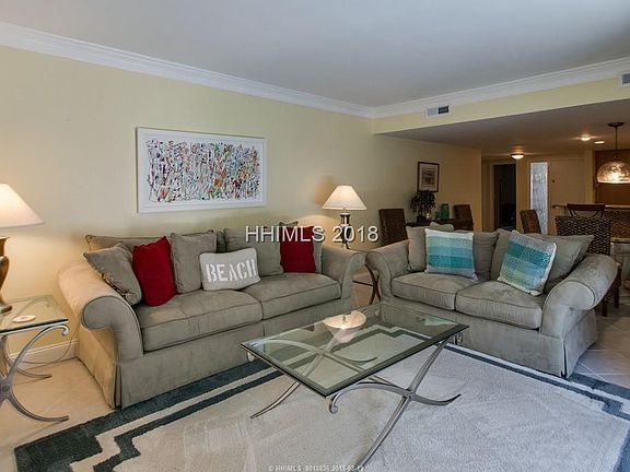 Smooth Ceilings, New windows throughout, new sliding glass door, re-tiled balcony! Tile throughout unit re-grouted. HVAC & hot water heater newer. Granite counter tops, newer appliances, quality cabinets. Walk-in shower, tile-accented vanity in MBR. Second bath newly tiled. New furniture package. Stone tiled floors in kitchen & living areas; carpeted bedrooms. Top floor, 2 Br end unit, light & bright! No one above you. Private balcony view with ocean breezes. Premier Rental with Sea Pines' Resort! Just bring a toothbrush & ENJOY!