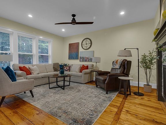 Beautiful custom renovated 3+ bedroom/2 bath single family home on four levels in highly desirable Thomas Park neighborhood. Entrance hall leads to front office or den which flows to generous rear living room, both with gas fireplace. Downstairs is a wide open chef's kitchen with stainless steel appliances and oversized dining area. Door leads out to lovely patio and garden. Bath with shower on this level as well. Upstairs are two spacious bedrooms and full tile bath. The penthouse level is configured as wide open space with plenty of room for a multitude of uses. The A-frame lines of the eaves create a charming feel in both the full office area with built-in desk as well as in the additional guest room space that adds yet another dimension to this attractive offering. Great closet space, custom lighting and original wide plank pine floors throughout. This lovely home is enviably tucked away on a charming side street and a quick walk to many restaurants, stores and the beach!