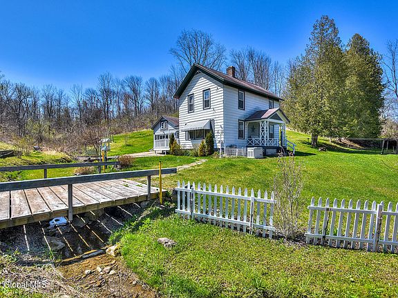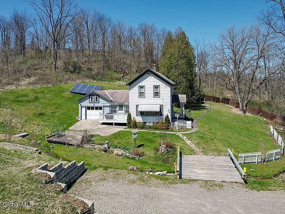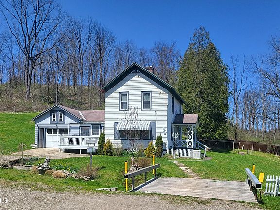 Private and low utilities is what you will get with this remodeled home! Kitchen has Hickory cabinets with tile flooring, wood floors, fireplace, side porch and garage. From your front deck enjoy watching your very own babbling brook. Home is completely solar with natural gas and has spray foam insulation to keep you warm all winter long!
