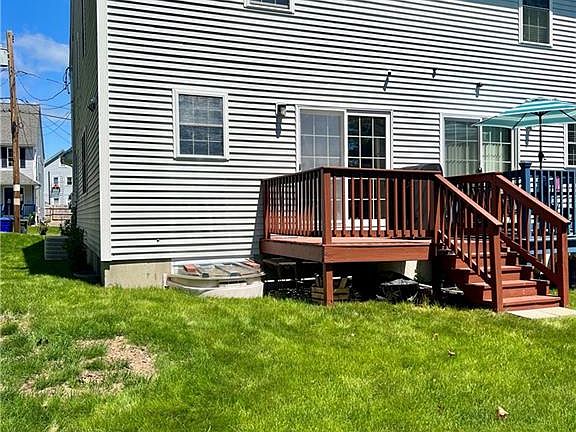 Enjoy this 3 bed, 2.5 bath townhouse on the Providence/North Providence line. Great highway access to Rt. 95, 146, 195 and 295- only 2 miles to Providence and Pawtucket train stations- 7 mins from downtown, 55 mins to Boston. Located on a quiet cul-de-sac, this unit offers an open first floor layout, granite and stainless steel kitchen, plenty of closet space and a finished basement with a second form of egress. This unit has washer and dryer hook ups in the basement and in the garage and each bedroom has a walk in closet. Solar panels allow for energy savings and the wood deck leading to the backyard, great for entertaining. Low condo fee and pet friendly. Conventional or cash buyers preferred as there is no FHA status. Come take a look!