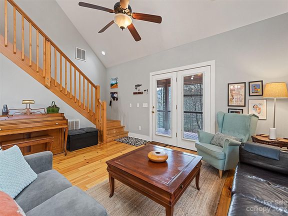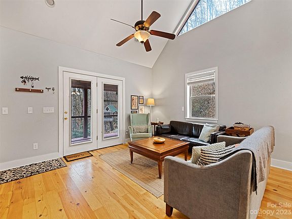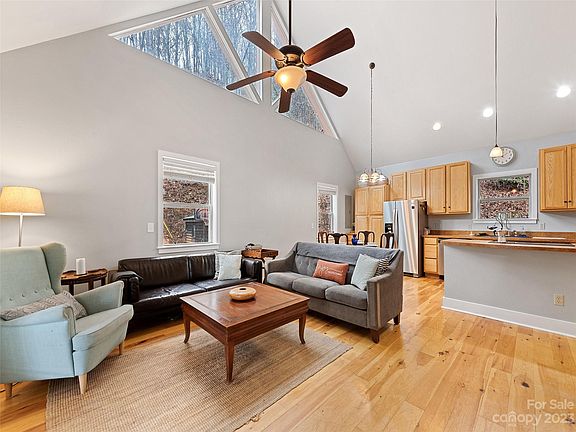 Cozy Mountain home in Sylva, NC situated on a private 0.76 acre lot. This 2bed/2bath home features an amazing BONUS room with 2 built-in twin bed nooks, each with their own cubby and storage. Bonus room could be used as an additional bedroom, play space, guest room, or office. The living area features an open floor plan with vaulted ceilings, pine wood floors, and a master bedroom on the main level. Other updates include a new refrigerator (2023), dishwasher (2022), HVAC (2019), and newly updated bathrooms (2023). Nestled in the trees with a winter mountain view, enjoy the perfect blend of tranquility and proximity to nature this home offers from a freshly painted front porch! Property also includes a treehouse and fire-pit space! Move-in ready and conveniently located with easy access to Historic Downtown Sylva, Dillsboro, and WCU!