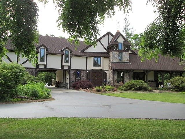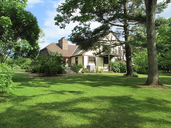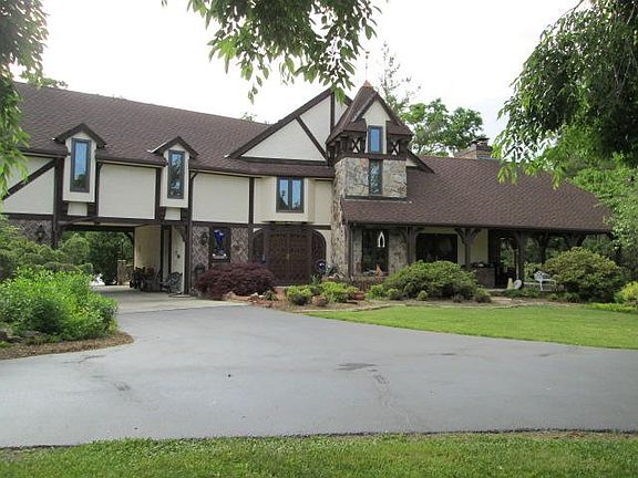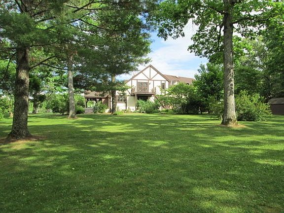 Private lake with 4.7 acre park-like setting. All acreage is fenced with paved circle driveway and a gated entrance. There's a two-car garage, outbuilding, and barn all on a corner lot. This Tudor-style home features 4 bedrooms, 3 full baths and 2 half baths. Formal dining room and office are a plus! Basement has additional living space for those holiday guests. All just minutes from town in a place you'll be proud to call home.