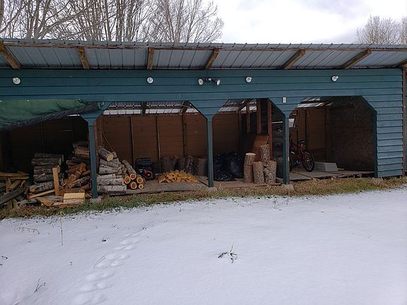 - Exterior Features: Trees, Barn/Shed, Porch, Storage Shed, Porch-Covered, Outbuildings, Balcony-Covered, Dog Pen, Greenhouse