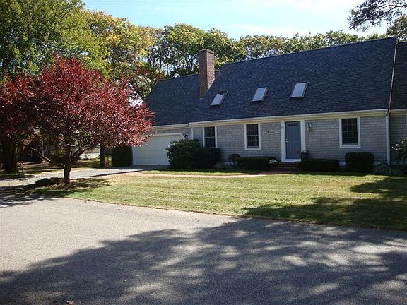 BELMAR Neighborhood, This custom built Cape with a 2 car attached garage, shed, gas heat plus you can walk down the street to Great Pond. Owners in Belmar may join the private ocean beach which offers views of Martha's Vineyard. The inside of this lovely home has a living room, hallway, kitchen/family/dining area, all with hardwood floors. There is a first floor Master Suite with a walk-in closet. Also a laundry room with 1/2 bath and an office. Up stairs 2 more large bedrooms, a full bath and a unfinished area over the garage which could be another room. The lot has lovely plantings and trees. Belmar has wonderful views and public access to Great Pond for clamming or to take a canoe ride. The little beach area is just great for small kids to see the wonders of the sea. Brokered And Advertised By: Real Estate Associates Listing Agent: Sandra A. McGhee