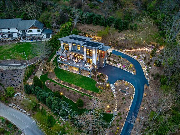 Luxurious home, views, contemporary, entertaining, custom-built, and mountain modern, all describe this luxury home nestled in a private perch overlooking the city of Asheville & mountains beyond. Come & delight in a sun-filled home with 3 primary suites, guest bedrooms, 4 full & 1 half bath including a lower level guest suite apartment with a full kitchen. Chef's kitchen with Bosch appliances & unique custom cabinetry to reflect views, a beautiful island with seating, marble & granite bathrooms, 3-zone heating & cooling, and stainless steel & bamboo accents make this a truly unique home. 3 levels of entertaining on covered decks and terrace level, all with spectacular year-round views. Elegant exterior features define this custom home including stone accents, professional landscaping & lighting design, natural walkways with stone steps & viewing gazebo for entertaining & enjoying views. Adjacent UNCA observatory forest with trails for hiking & minutes to shopping & dining. Come See!