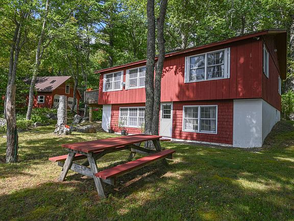 Experience serene lakeside living on Moulton Pond! This charming 3-bedroom, 1.5-bath home offers 200 feet of pristine waterfront, nestled on 3 acres. Gather in the open-concept kitchen and living room or unwind in the spacious family room. Most rooms boast stunning water views, including the primary bedroom. Step outside to a generous front lawn, perfect for outdoor activities, and enjoy a fantastic swimming area with a gravel beach. Enjoy the tranquility of nature from the screened porch or relax on the deck overlooking the pond. A 2-car garage with ample storage space above provides convenience and flexibility, including the possibility of a bunkhouse or other bonus space. Whether it's used as a seasonal retreat or year-round residence, this property promises peace and privacy in a beautiful natural setting. As a bonus, this lovely spot is just a ten-minute drive to the Great Pond Mountain Conservation Trust, which features 5,100 acres of protected land and includes a network of gravel roads open to walking, running, biking, horseback riding, and snowmobiling.