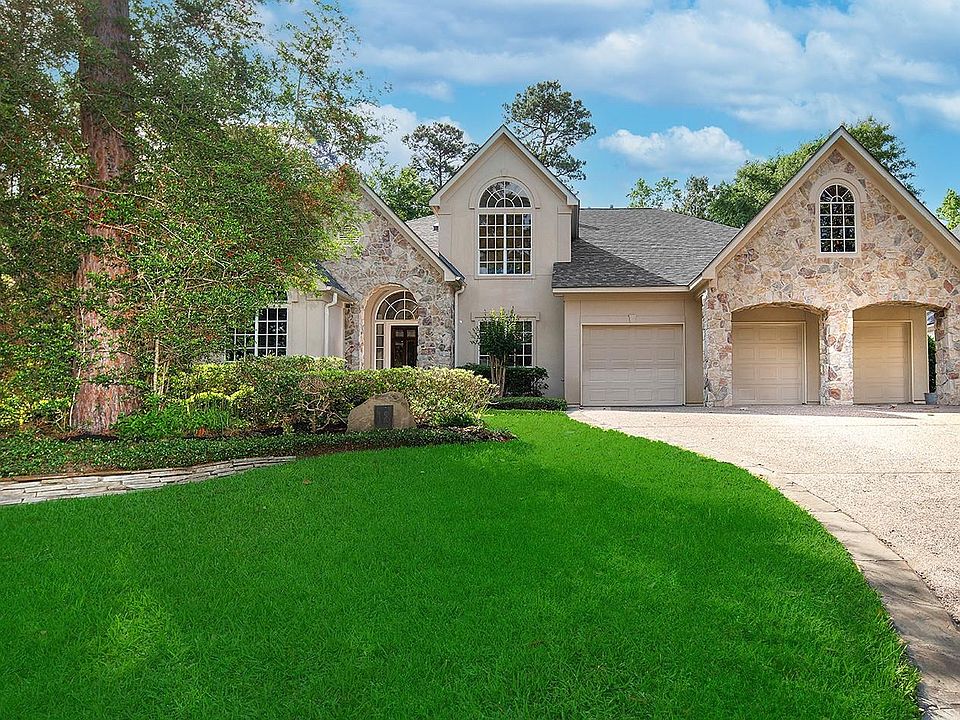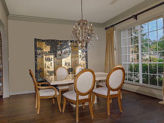 Beautifully updated John Post custom home overlooking the Palmer Golf Course in Cochran's Crossing! Stunning curb appeal with a stucco and stone exterior, one year old roof, and pristine landscaping. Extensive hardwood flooring, double crown moulding, plantation shutters, abundant storage and generous room sizes. Both formals/flex space; private study has gorgeous built-ins and large windows to enhance your work from home experience! The island kitchen with stainless steel appliances (fridge included), breakfast bar and under cabinet lighting opens to the breakfast room and den with gas log fireplace; Owner's retreat down with door to the patio and pool; three bedrooms and game room up with balcony; three car attached garage; backyard paradise features a fenced yard with covered patio, outdoor kitchen and fireplace, pool and lanai, all overlooking the serene golf course.