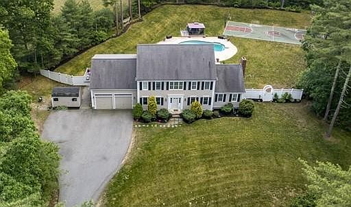 This handsome picture perfect center entrance Colonial sits proudly at the end of a quiet cul-de-sac in N Pembroke yet within walking distance to town center! Beautiful 2 story entrance foyer, leads to family size eat-in kitchen with tons of natural light, stainless appliances (all gas) and kitchen island. Central Air or you can open the sliders to the the jaw dropping fenced back yard w/ massive trex deck w/ built-in hot tub, a fire pit area, stunning In-ground gunite pool and your own private basketball court! Enjoy telling family stories or a movie in the family room with a wood fire place, There is a formal dining room with crown molding & hardwood floors, 1st floor office/den, 1st floor laundry, 3 generous size bedrooms AND a massive master suite w/ jacuzzi and juliet balcony, The full finished basement has a great in-law potential! There is a "great" room w/ wet bar, a bdrm and a full bath! 2 car garage attached! This is the perfect long term home for your entire family!