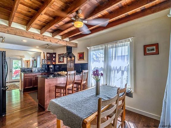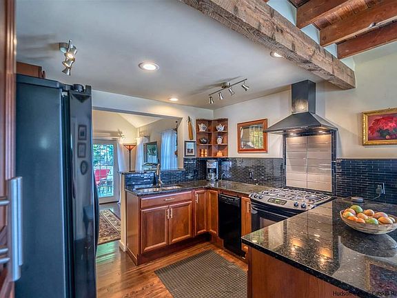 Sweet Cottage Living.. Stop by 18 Madison Ave and marvel at the renovation work that makes this cottage special! Hardwood flooring, built-ins, gourmet kitchen, high end appliances, glass back splash,and custom cabinetry, great room with vaulted ceilings, beams, french doors, new windows, new roof, 1st floor washer and dryer, renovated bathroom, large bedroom upstairs. Plenty of space for a guest room. Beautifully sited off the road, with plenty of parking, framed by large fenced back yard, fire pit and spacious decking. This property has wood siding, no vinyl here! Full dry basement, upgraded plumbing and electric, HVAC 3 zone mini split, ceiling fans, everything ready to go for you! Come on over and take a look!