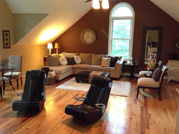 Newer construction home offers a fresh modern look mixing the qualities of Victorian construction with a Colonial/Farmhouse appeal. Expansive open first floor presents sparkling hard wood floors, amazing sunlight & windows galore. A custom kitchen with all the bells and whistles, granite counters, stainless appliances & a huge pantry to name a few. French doors off the eat-in-area lead to the wrap around deck where cook-outs may frequent the long summer days. Move to the second level where a (huge medial room, 4th bedroom or second master suite) greets you with soaring 12' cathedral pitched ceilings and dormer windows, this room has endless possibilities. Up a few more steps to the full second floor where 3 bedrooms & two full baths continue to impress. A master suite with vaulted 12' ceiling, walk-in closet & gorgeous ceramic tile bath with walk-in shower & deep Jacuzzi style tub.