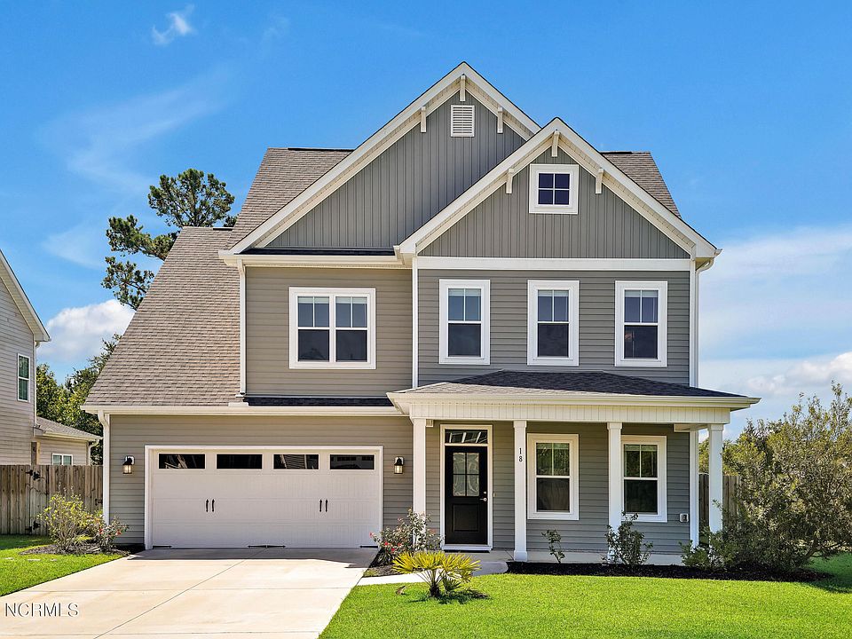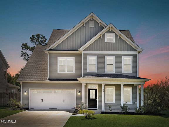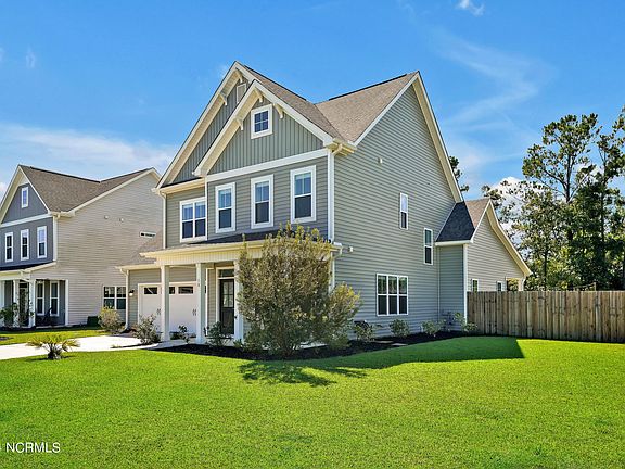 Welcome to The Sanctuary at Forest Sound. Located on a corner lot, this beautiful two story home has over 2900 sq. ft. of living space and offers four bedrooms and three and one half baths. Relax and unwind from the day on your rocking chair front porch. The open foyer welcomes you in with lots of natural light. Off of the foyer is a powder room for guests. The kitchen is perfect for entertaining friends and family with a large island and gas cooktop. Quartz counter tops make for easy clean up. The open floor plan is bright and inviting. The large living area has a gas fireplace with shiplap detail and built in shelves. The family room/Office space has a tray ceiling and lovely wainscoting, perfect for working from home. The spacious owner's suite includes vaulted ceiling and tons of natural light. The primary bathroom will spoil you with a large, fully tiled shower, enormous double vanity with lots of storage space and a custom closet most women would envy. The laundry room is conveniently located on the first floor as well. Upstairs will welcome you into a large loft/game room. There is another primary bedroom with ensuite bathroom and 2 more bedrooms that share a full bathroom. This home also has a fenced yard for peace of mind, watching the children or fur babies play. Don't miss the opportunity to have it all. The Sanctuary at Forest Sound is centrally located in the heart of Hampstead. Only 15 minutes to Wilmington or Surf City/Topsail and just 1 mile off of the Intracoastal Waterway. Make your appointment fast!