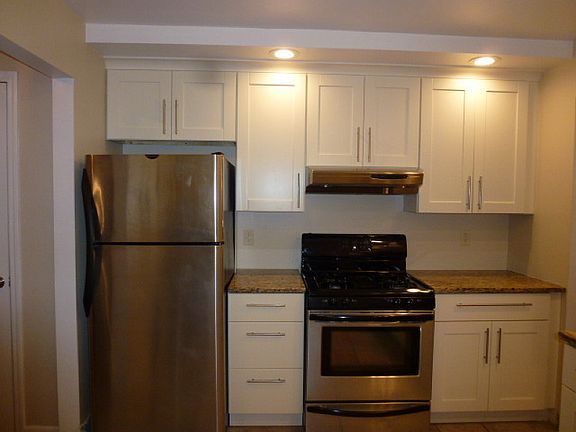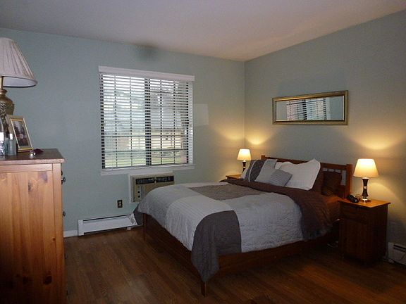Great sun filled condo with new eat in kitchen & updated bathroom, wood laminate floors, crown molding and chair rail in dining room, large living room, ldry in unit, walk in closet in bedroom.
