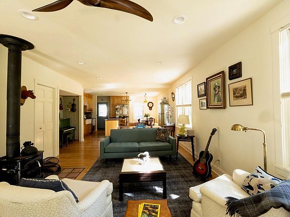 One of a kind Nicollet Island home with a fun artistic twist! Originally a duplex now thoughtfully converted into a single-family residence, this uniquely fun floorplan has space for everyone! Front and back porches, renovated kitchen, updated baths, freestanding woodburning stove, multiple office/lounges and tons of natural light. Three bedrooms + an office/sitting room and great full bathroom up. Newer 2-car heated and insulated garage. Magical location on the island abutting wooded parkland, offering exceptional privacy and treed views. Live happily here it as it sits or convert it back to a duplex. A rare opportunity!