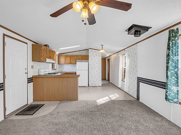 This well-maintained 1999 2-bedroom mobile home offers comfortable living with an eat-in kitchen and a full bath. The living room and both bedrooms feature new carpet, giving the home a fresh and updated feel. All appliances convey, making this an easy, move-in-ready opportunity. The property includes a side yard with a storage shed and parking for two cars. Pets are allowed with park approval.