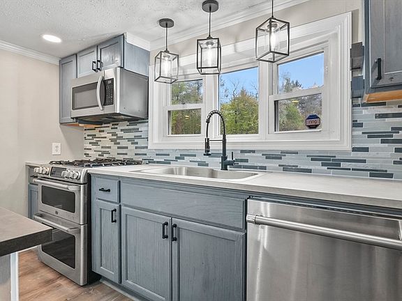 Immaculately maintained inside and out, this stylish mobile home on a dead-end street offers modern comfort and thoughtful design. Enter through a beveled glass door into an open-concept layout with vinyl plank flooring and a stunning kitchen featuring stainless steel appliances, a gas stove with double oven, tile backsplash, wood-accented island with pendant lighting, recessed lighting, and sleek finishes. The living area boasts a bay window with window seat and dual closets. Two bedrooms showcase wainscoting and recessed lighting. The updated bath offers carrara marble and quality fixtures. A dedicated laundry area includes a tile backsplash. Outside, enjoy a wood deck, flat usable yard perfect for entertaining, storage shed, metal roof, and vinyl siding. Two driveways add convenience. Park rent includes snow removal, water, sewer, trash, and taxes. Oil tank less than 2 years old! Park approval required. Come see all this home has to offer—schedule your showing today!