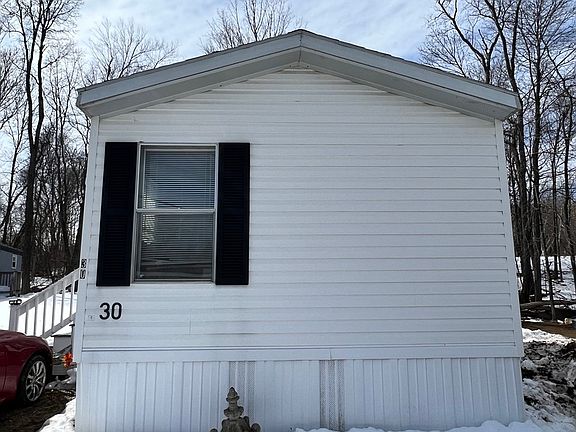 2 Bedroom updated manufactured home located in Suburban Village and nicely sited toward the rear of the park with mature trees framing the back yard for privacy and free standing shed for your storage needs. Property features open kitchen and living room floor plan with skylight, updated bath with full walk-in shower and skylight, large master bedroom with double closets, second bedroom and free standing laundry with updated cabinets. All flooring has been updated to wood laminate/vinyl, brand new hot water tank, freshly painted and more. Attached deck provides nice quiet area to enjoy your morning coffee or afternoon sun. Park fee includes: Water; Sewer; Trash removal; Property taxes; and Snow removal.
