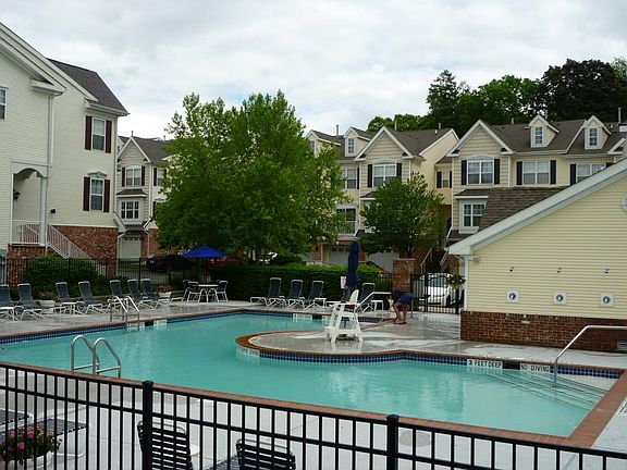 Impeccably maintained townhouse, gleaming wood floors, 2nd living room/den built for entertaining with walkout to courtyard. Blinds and window treatments tastefully done and remain with the rental, matching light fixtures throughout. Large master bedroom with vaulted ceilings, walk in closet, double vanity master bath with shower stall and deep soaking tub. 8 mins to Light Rail with access to PATH and NYC. Buses also nearby. Owner pays monthly maintenance including parking, water, use of pool, snow removal, landscaping. Tenant security deposit 1 month, fee split.