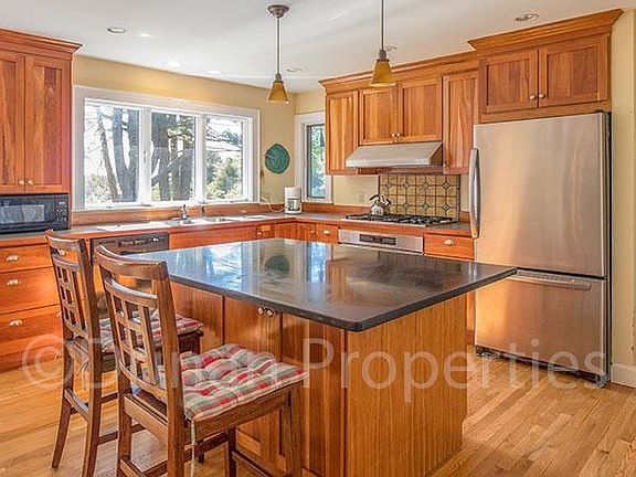 Freeport: Wolfe Neck. Located in a pastoral setting with views of a farm pond and the ocean, this fully furnished and nicely appointed 3 bedroom, 2.5 bath home features a wonderful kitchen with cherry cabinets & 5-burner Dacor gas range and adjoining dining area, a large living room with a fireplace, and hardwood floors throughout. Additional features include a large basement family room with a half bath, a one car garage and a great deck overlooking the private back yard. Available October- May. You can walk to beautiful Wolfe Neck State Park, and it s only minutes from downtown Freeport with its many fine restaurants & shops and easy access to RT 295. Sorry: No smokers. A small dog may be allowed. $1850.00/mo. plus utilities. Contact Drinan Properties @ 1-207-799-0829, and view more pictures on our web site: www.drinanproperties.com . This home is listed under Houses in Freeport as #220HO and under Seasonal properties as # 220SE winter Furmnidghed Rental: Sometime Sept-Oct 2018 thru May-June 2019