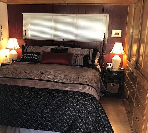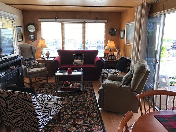 ***New Gree Mini-Split has been added to this exceptionally well maintained mobile home in Tramview Mobile Home Community - the 55 year old and over community. This beautiful home features lovely vistas both inside and outside, From the Wood Paneled Walls and Ceiling in the Living Room area to open and expansive kitchen with plenty of built-ins, to the wood paneled hallway with access to the wood paneled bedroom with King Sized Bed, this home is sure to please the most discerning buyer. The stall shower in the bathroom is newer as well. The kitchen even features a Bosch dishwasher. Now, to add to the charm of this wonderful home, there is an additional living room outside under the roofed canopy featuring lovely views of the Santa Rosa Mountains and Mount Washington to the south. Then, if that wasn't enough, you can descend to the private patio with access to the casita with bunk beds. There is GolF Cart parking and a parking space for your car as well. The community pool and spa are a short stroll away as well as the clubhouse and shuffle board lanes. The park is also close to Target and Trader Joe's and dining! Why not make this glorious home Your New Home - TODAY! Easy to show! Welcome to your New Home!