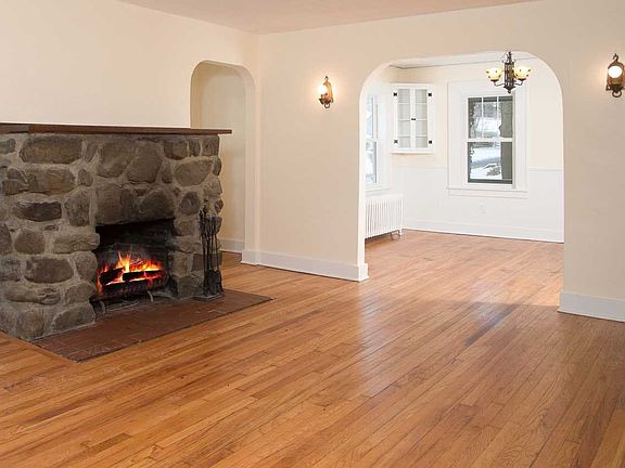 Sweet 1949 Tudor located on almost half an acre. The house interior has been updated with new wood floors throughout, a modern kitchen, beautiful bathrooms and fresh paint. Lovely 1940's details are still there - a separate breakfast nook off of the kitchen with original cupboards, a built-in cabinet in the dining room. The large screened porch can be entered from the dining room or from outside. There are two good-sized bedrooms on this floor. There are two good-sized bedrooms on this floor. On the second floor, at the top of the stairs is a room that can be used as a den, office or library - from there the master suite is accessed, which has it's own large bathroom and separate dressing room, with a cedar closet. Pond is next to the property but not on it.