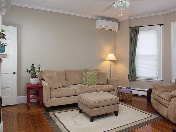 In East Watertown, this tastefully-updated condo retains much original charm. Foyer open to rooms with high ceilings, wood floors, and bay windows. Living room features fireplace framed by ornate mantel, carvings, and columns. Kitchen has granite counter tops, stainless steel appliances, and roomy table area. Nice size master bedroom, with a second bedroom also offering potential for a study. Recently remodeled bathroom (2013). Other upgrades include 2013 roof, 2013 water heater, and 2014 ductless A/C units. Laundry area and ample storage in basement. Garage parking plus two additional spaces. Located in close proximity to public transportation, shops, and the restaurants of Coolidge Square. Also nearby are walking/biking paths along the Charles River.