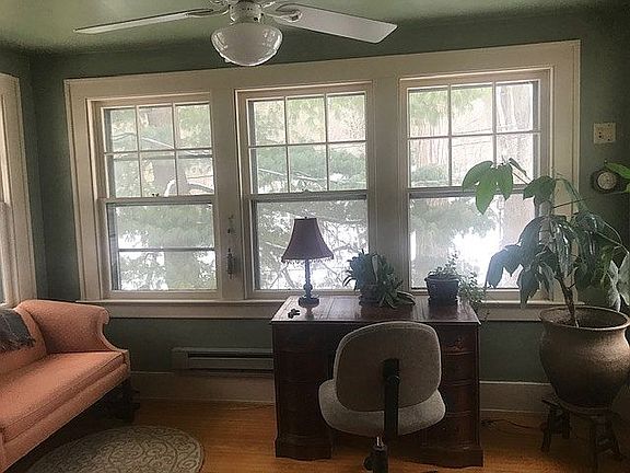 This charming 1924 wood-framed colonial feels like a permanent vacation home with its direct access to the hills and trees of Highland Park and walking proximity to Rochester's South Wedge, Corn Hill Landing, and College Town neighborhoods. The first floor boasts the house's original tiled foyer, gumwood trim throughout, built-in bookcases, arched entryways, ceiling fans in three rooms, a working gas fireplace, and a four-season sunroom overlooking the park. Upstairs are two bedrooms with ceiling fans plus a master suite with two ceiling fans and a four-season sunroom. The expansive full bathroom is also on the second floor, and an additional working half bathroom is in the basement, along with a high-efficiency heating and hot-water system. The attic has been partially converted into a recreation room, and the backyard is a nature-lover's paradise with its stone patio and stone stairs leading directly into Highland Park.