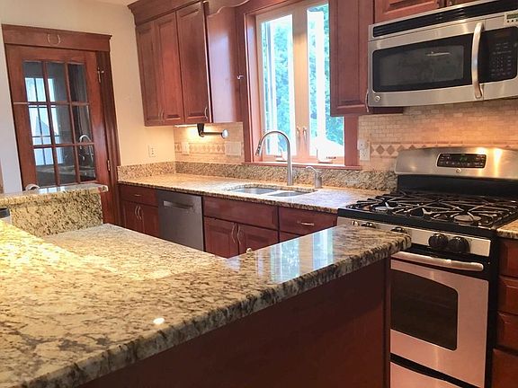 Positively stunning interior renovation of this 3+br 2.5ba unit in an owner-occupied, two-family home just steps from Mass Ave. This second-floor unit features a large living room with decorative fireplace and adjacent, heated sunroom. There is a separate dining room that is open to a completely renovated kitchen with stainless appliances and granite counter tops. Tons of natural woodwork and gleaming hardwood floors throughout as well as all newer, vinyl replacement windows. There are two good-size bedrooms. The bath has been completely updated. The third floor is newly finished with a large seating area, good size bedroom, full bath and a dry bar. This must-see has a new, high-efficiency gas heating system with multiple heating zones. There is a three season enclosed porch in the rear of the house. Off-street parking is included. High-efficiency washer and dryer are included as is additional storage space in the basement with bonus 1/2 bath. Available 9/1.