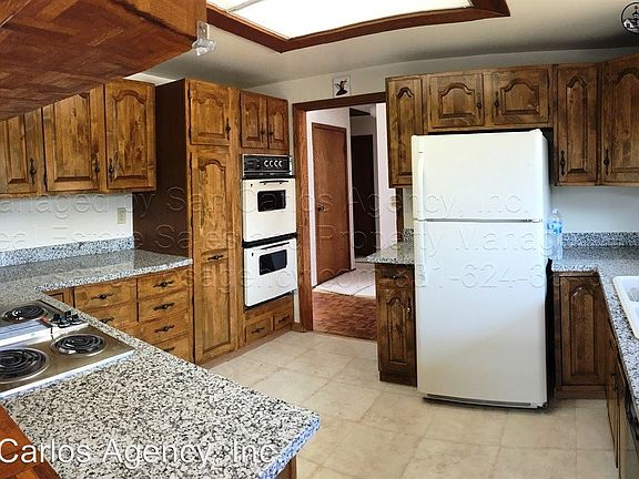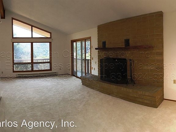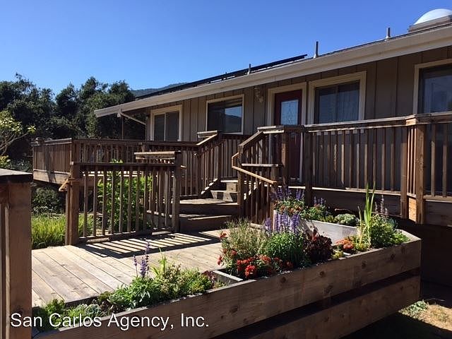 Private 4 Bed/3 Bath in Carmel Valley with Mountain Views! - (PERKR) San Carlos Agency, Inc. presents this four bedroom, three bath, two-story home features grid tied Solar electricity, a large entry deck, a wrap around deck upstairs and a private deck off the master bedroom with beautiful views of Carmel Valley. The upstairs includes a kitchen with granite counter tops, dining room and living room in an open floor-plan graced with high ceilings, a large wood-burning fireplace, picture windows and sumptuous new carpeting. The master bedroom has a large closet and attached bath with jetted tub and granite counter top. There is also a second bedroom and bathroom with shower. Skylights brighten both bathrooms and the living room. Downstairs holds a cozy family room with another fireplace, a small kitchen with bar and lots of room for a pool table, ping-pong or both! There are two bedrooms and a bathroom, a laundry room (washer/dryer not included), storage room or office and an under-stair storage room. All appliances and heating are electric to take advantage of solar energy. Pet negotiable. No smoking. Contact San Carlos Agency at (831) 624-3901 or rentals@sancarlosagency.com to schedule a showing. Visit www.SanCarlosAgency.com or www.CarmelRentalProperties.com. (RLNE2567954)