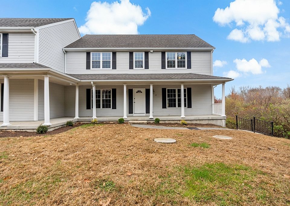 Set back from the road and nestled in nature, this incredible townhouse offers a blend of privacy and charm. With a two-car garage tucked beneath, a spacious farmer's porch and a brand new deck, this home sits on over 2.5 acres of its own land. Inside, hardwood floors run throughout, and an updated granite kitchen opens to an eat-in dining area or, optionally, a separate dining room that could serve as a home office. The expansive living room stretches from the front to the back of the home, featuring a cozy propane gas fireplace in the corner. A convenient half bath is located on the main level, while upstairs you'll find three inviting bedrooms, each with hardwood floors. The main bedroom includes its own en-suite bathroom and two walk-in closets. The additional two bedrooms have generous closet space and the home is equipped with a second-floor laundry hookup. There is also room for expansion with a walk out basement.