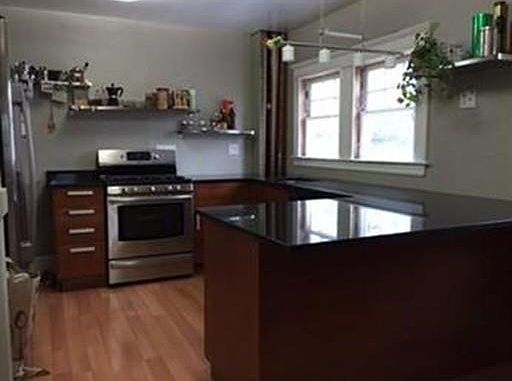 Available for Now! Large 6 rooms, 2 bedroom 1 bath with sunroom, formal dining room, sunny and large living room. Eat-inkitchen with new granite countertop, new backsplash, sing, all SS-appliances, pantry, breakfast nook. Gleaming hardwood floors throughout, new windows, Central Air, gas heat, washer/dryer in the basement, some storage and private driveway for 2 cars included. There are a shared 3 season sunroom, yard and patio for barbecue. Convenient to major routes, x-buses to Boston.