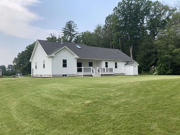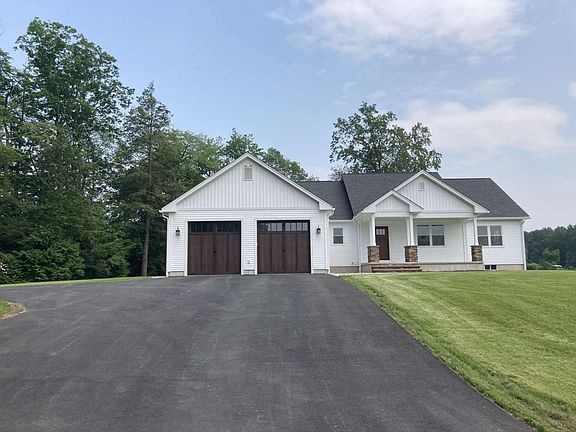New cottage style home with attached two car garage, back deck and front porch, sitting on .925 acre of flat land. Tucked away at the end of a quiet cul-de-sac, overlooking woods and farm land. Open floor plan consisting of living room, kitchen and dining room, Enjoy the cathedral ceilings, skylight, hardwood floors and gas fire place. Custom built kitchen cabinets with soft close doors and drawers, an island, granite counter tops . Master bedroom with tray ceiling. Master bath with spacious walk-in shower, double vanity and separate make-up area. A designer walk-in closet. Two additional bedrooms share a second full bathroom. Plenty of closet space throughout. A bonus room that serves as both a pantry and laundry area. Mud room located off the garage. Large basement Insulated, framed with rough plumbing and electric; there’s room for a large utility room, a future half bath, a big open area for play and even a bonus room. Energy efficient, propane gas heat and central air.