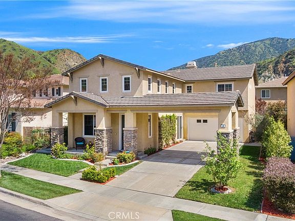 Enjoy the panoramic views of the San Gabriel Mountains as you enter Mountain Cove, a remarkable scenic and secluded gated community. Mountain Cove offers resort style living that features a private pool, hot tub, clubhouse, 5+ acre park plus playground, walking paths, all with social events throughout the year that create a wonderful sense of community and monitored by private security officers. This lovely light-filled home on a quiet cul-de-sac offers 3 bedrooms and 2 1/2 bathrooms. It features a spacious living room, a generous size kitchen that opens to a cozy family room with a fireplace. An oversized primary suite featuring a walk-in closet, private bathroom with dual sinks, bathtub and a frameless shower. The upstairs also features the second and third bedrooms, a full bathroom, laundry room and loft with a built-in desk. The yard is a fruit lover's dream including Meyer lemon, Key lime, yellow peach, pomegranate, white nectarine, white peach, Anna apple and Mandarin Trees. The custom-built patio includes a built-in barbecue that is perfect for outdoor dining and entertaining. Come experience this lovely home in a one of a kind neighborhood that offers an unmatched natural setting but is less than 5 minutes from the 210 & 605 Freeways and just 10 miles from Pasadena.